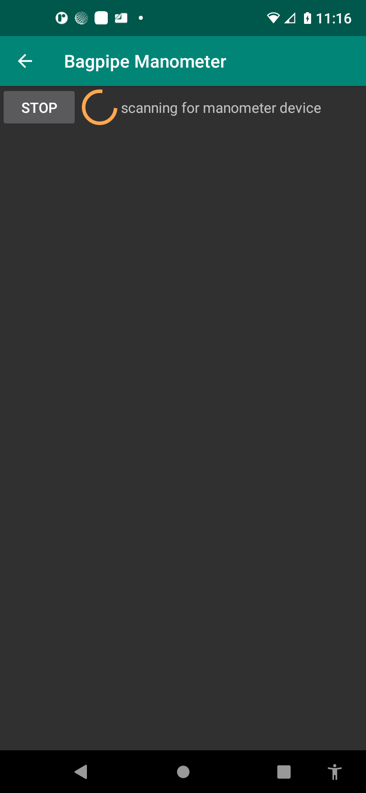 - You will be brought back to the main view. When begin to play your bagpipes, the pressure should be graphically displayed.